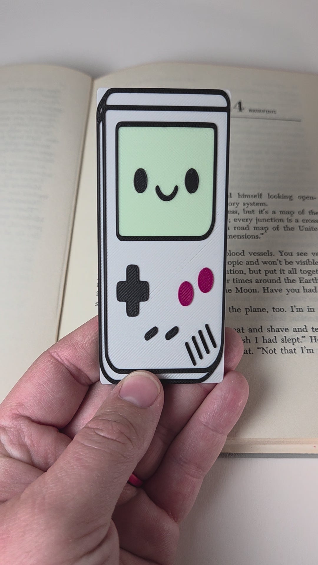 This sleek, 3D-printed Game Boy–style bookmark features a glow-in-the-dark screen and classic retro details. Made for gamers, readers, and collectors alike, it combines nostalgia with utility—keeping your place with pixel-perfect personality.